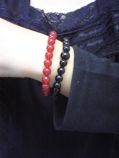 10月9日以来 Aliceの左手首には いつも(と言っても仕事中はカバンの中)赤と黒の守護の石