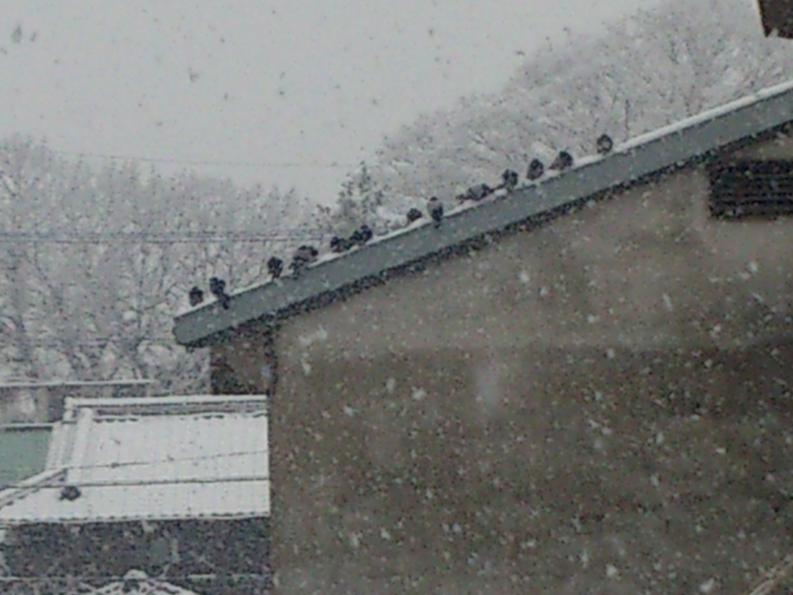 ベランダに雪が積もってるのが見えました。
