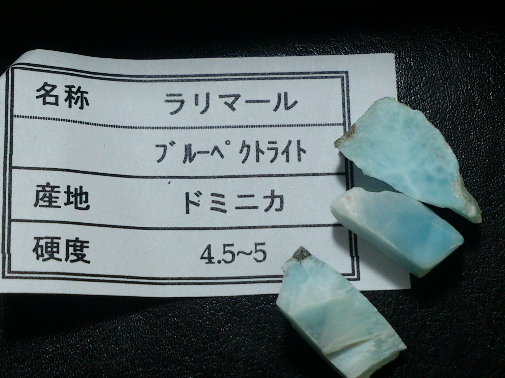 自分には ラリマー欠片とウグイスメノーのスライスを