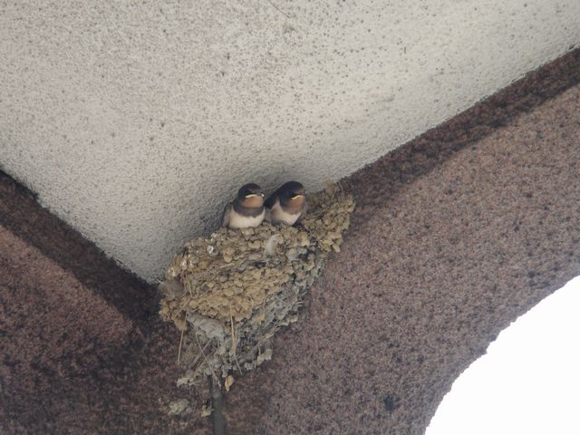 出勤前に店の正面玄関に巣を作ってるツバメさんを写真に収めてきました!