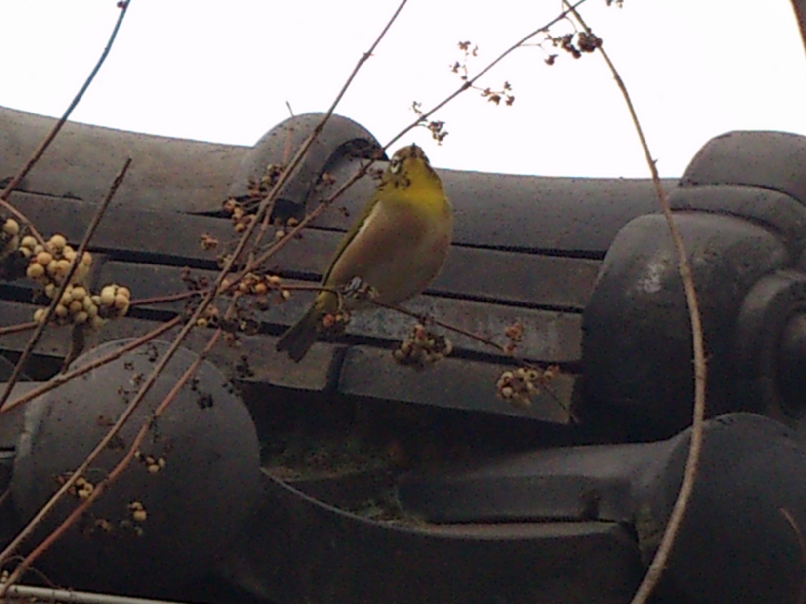 背後は屋根だけど 実はこのメジロさん 目の高さでこんにちは^^