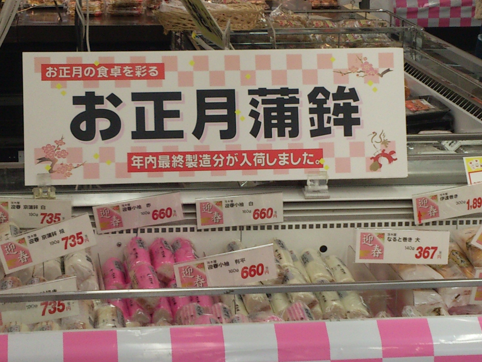 お正月蒲鉾のボードは 今年Sチーフの要請で新しくした
