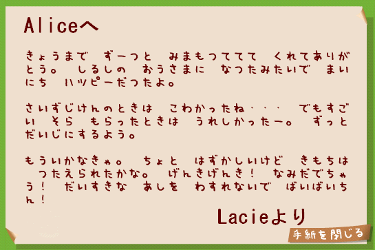 なんとなく Aliceの中で 大切な存在だったので
