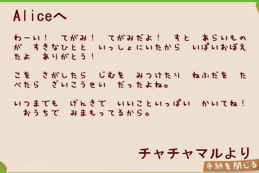チャチャマルは覚えたことばを駆使して手紙を書いてくれて