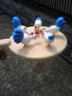 それぞれのにわとりさんの首に上手に糸が繋がっていて
