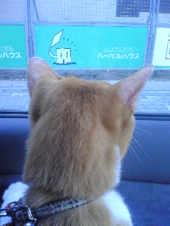 車に乗ってる間中 車窓を眺めて ま~おま~お鳴くんだけど